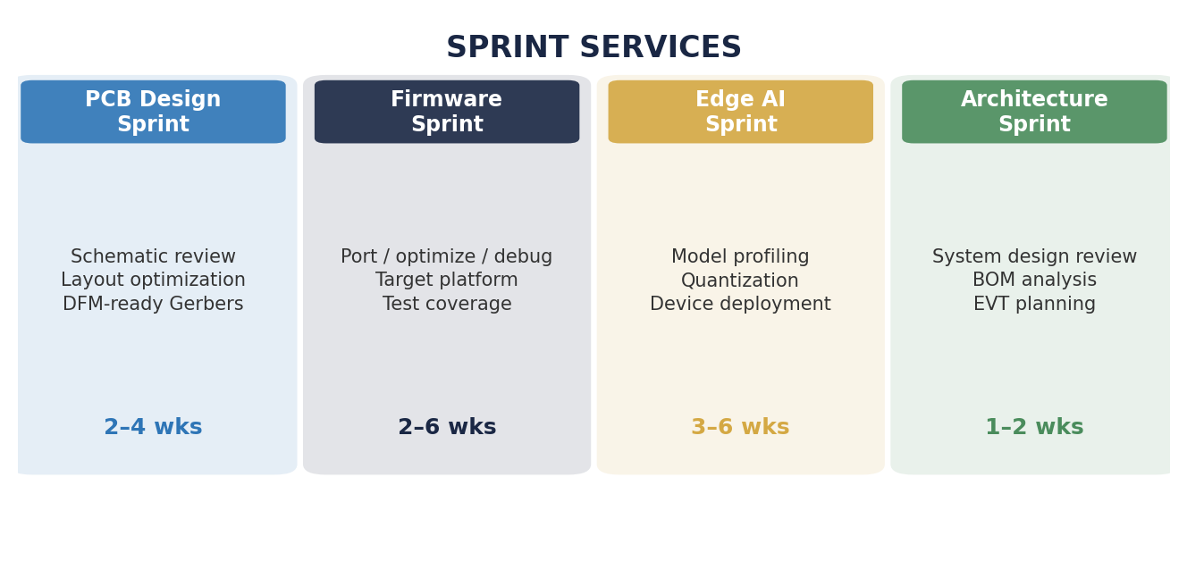 Not every project needs a six-month retainer. Some need four sharp weeks of board layout review. Others need firmware ported to a new MCU before a demo. That's why we're launching Sprint Services: fixed-scope, fixed-timeline engineering engagements for founders and teams that know exactly what they need built.